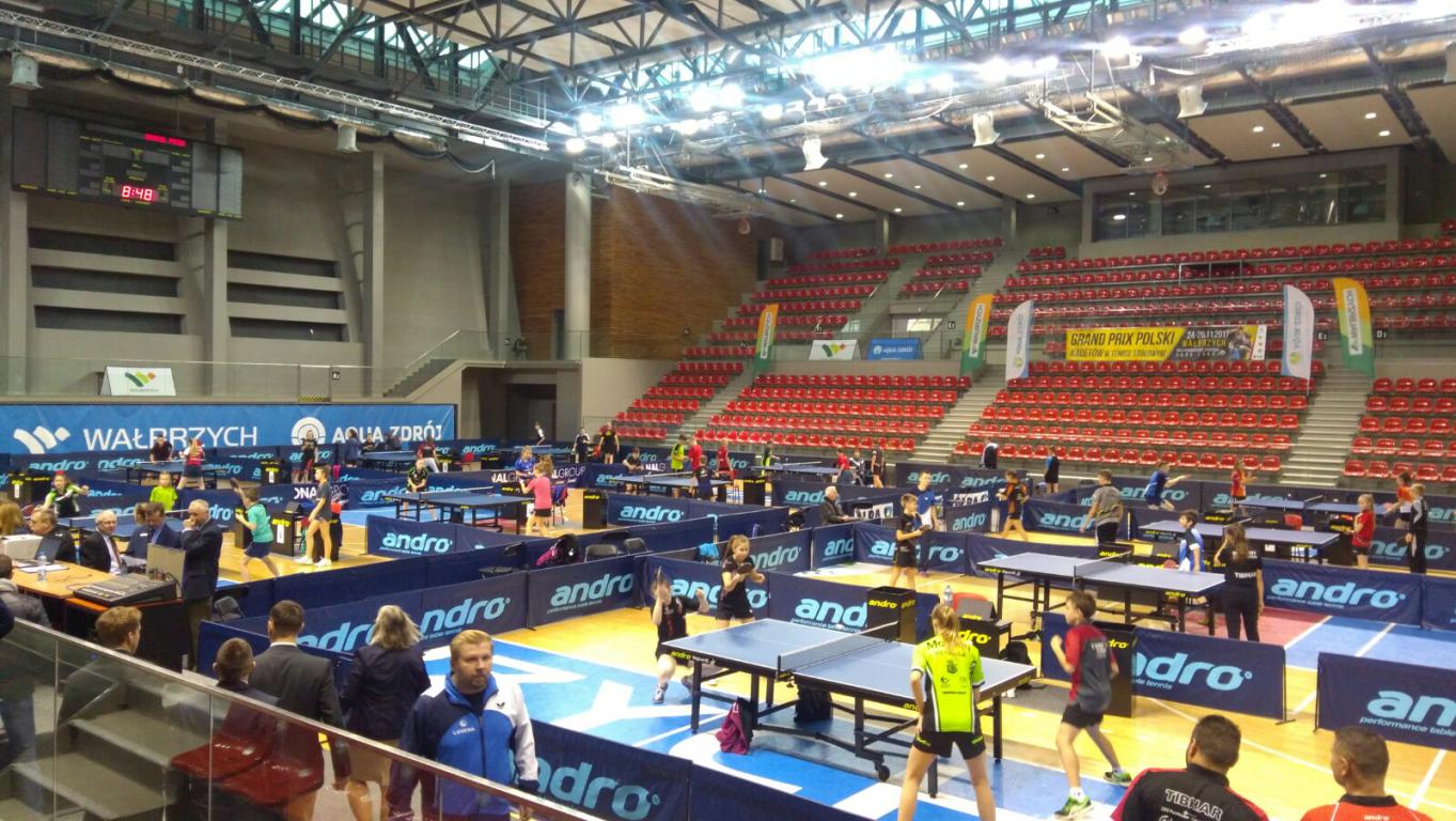 W dniach od 24 do 26 listopada w Wałbrzychu odbywało się II Grand Prix Polski kadetów i kadetek w tenisie stołowym. Wśród najlepszych zawodniczek w Polsce znalazły się Zuzanna Gałka oraz Sara Wojciechowska. W piątek Zuzanna Gałka wygrała w swojej grupie z Podymą Karoliną ze Stronia Śląskiego 3:0, Bździuch Weronike z Zamościa 3:0 oraz Włodarczyk Nikolą z Krosnowic 3:0. Po wygraniu grupy wygrała Łącką Julią z Barcina 3:1 i awansowała do gier sobotnich. Druga nasza zawodniczka Sara Wojciechowska grająca ze starszymi koleżankami przegrała trzy mecze z Małysiak Kamilą z Nowego Targu, Przybytkowską Wiktorią z Chełmna, Frelich Wiktorią z Lubonia wszystkie 0:3 i nie awansowała do dalszych pojedynków.